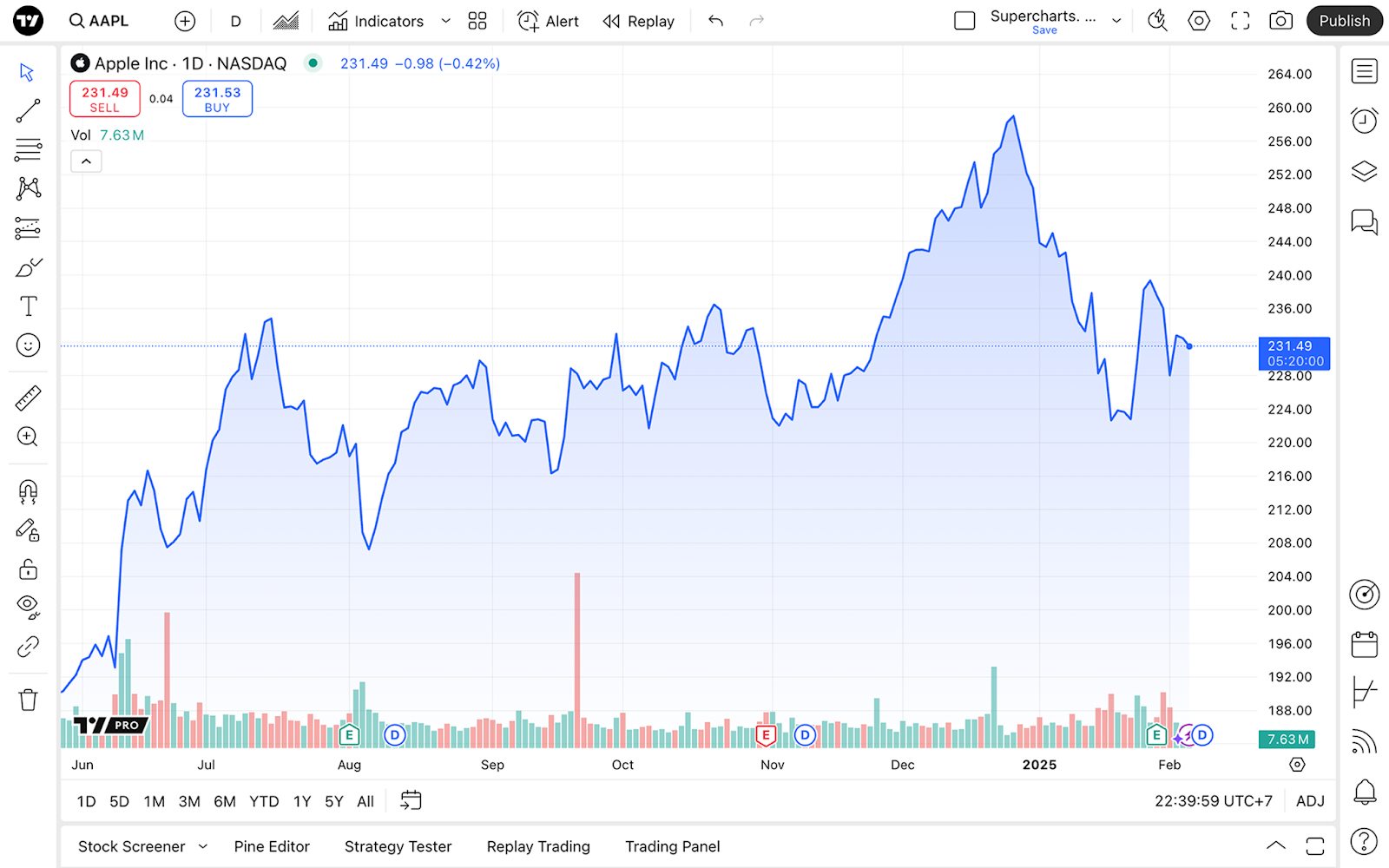 エリアチャートは大きな価格変動を読みやすくし、急激な値動きを確認するのに役立ちます。エリアチャートはレポート用に幅広く使用され、踏み込んだ意思決定が必要なときでも明確なイメージを与えることができます。