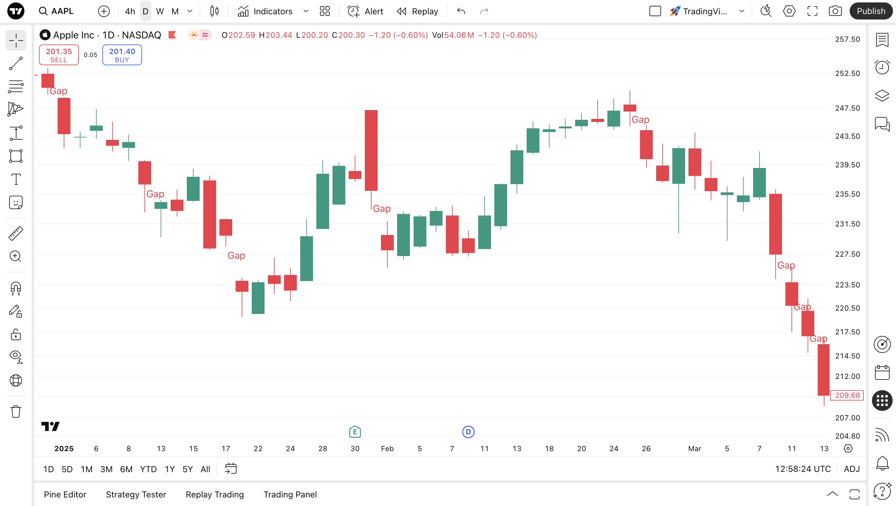 ギャップパターン(窓開け)は非常にユニークなパターンで、ナスダックやボンベイ証券取引所といった伝統的な取引所で取引される資産できわめて効果的に機能するという特徴があります。こうした市場では取引時間が決められており、チャートはリアルタイムで更新されます。