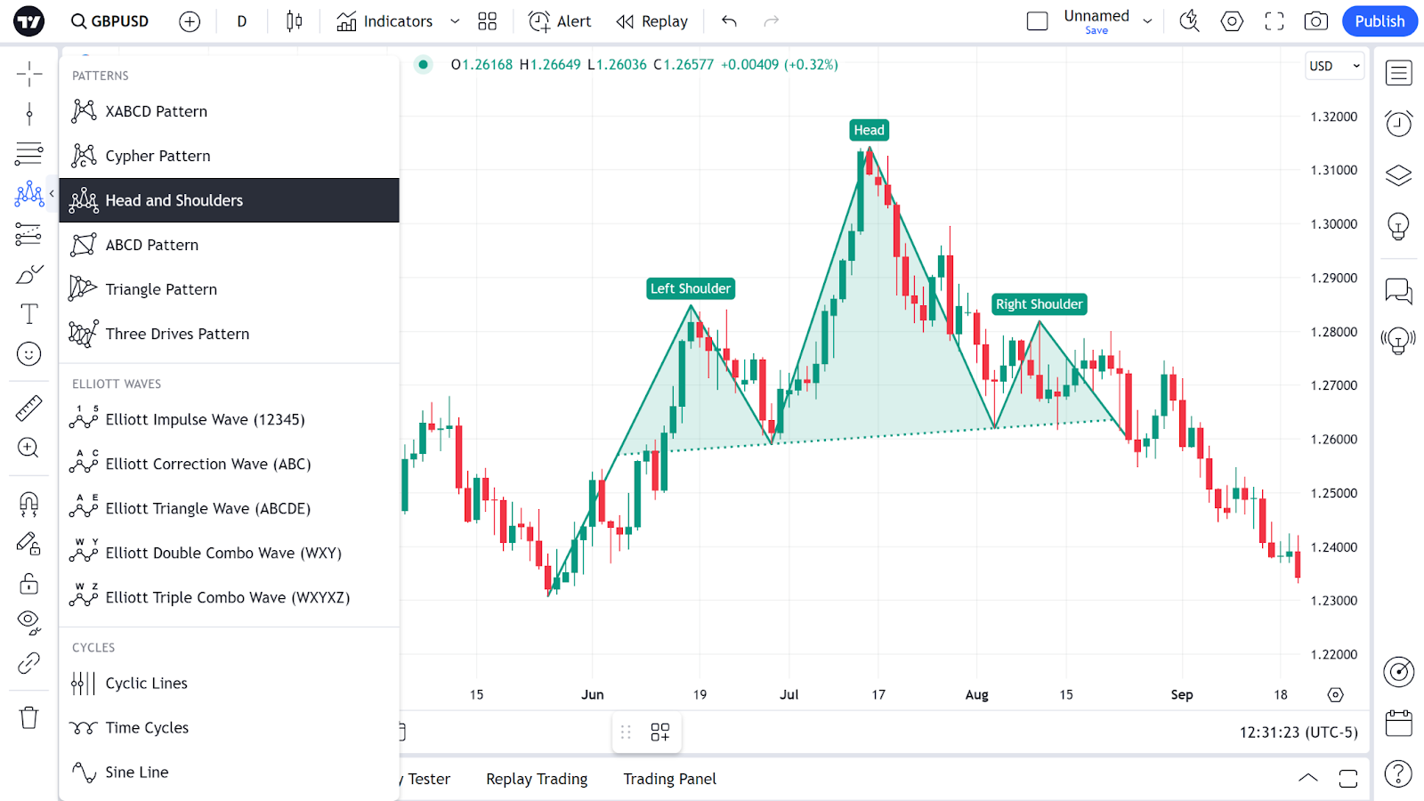 そのパターンの中には、チャートタイプが異なっても機能するものがあります。たとえば「ヘッドアンドショルダー」の反転パターンはラインチャートでもローソク足チャートでも機能します。