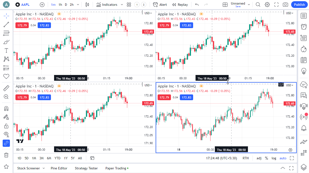 チャートを別々のグループに追加すると、チャート間でシンボルと時間足を個別に同期させることができます。これを実行する手順は以下のとおりです: