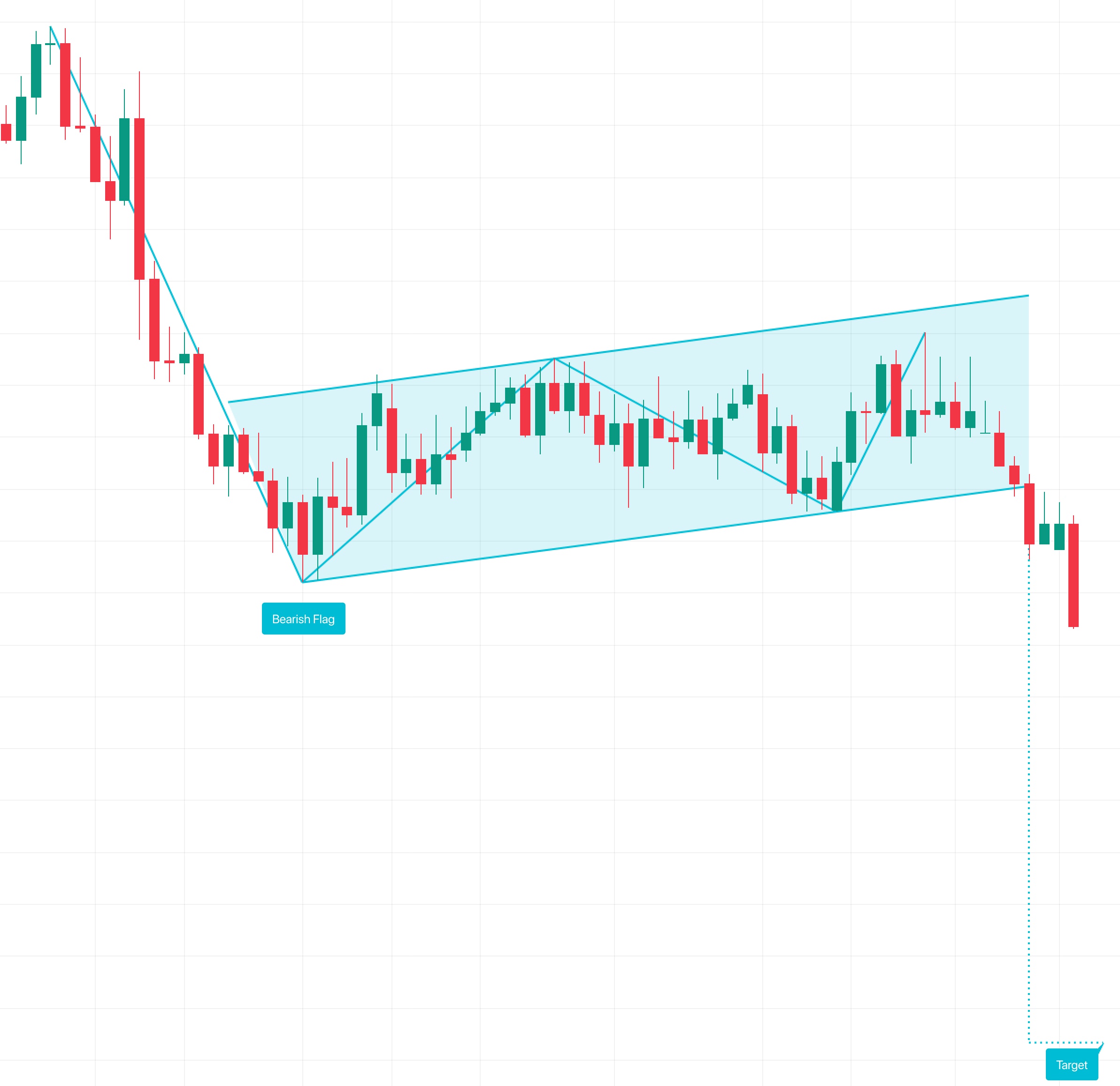 - Awaiting 価格が予想の水準に到達しておらず、旗竿に対する最大許容幅%で設定された旗竿の高さのパーセンテージを超える戻り高値が存在しない。価格がフラッグの下限を下抜けた場合は、その後、フラッグのチャネル内のどの高値も上回らなかったという条件を満たす必要があります。