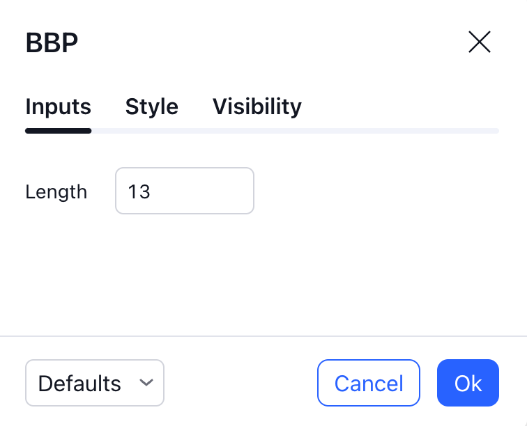 ブルベアパワー (BBP) は、別名エルダー・レイ・インデックスとしても知られており、ある銘柄の買い手(ブル)と売り手(ベア)の強さの関係を評価するものです。このインジケーターの値がゼロでなければ、市場において買い手と売り手のいずれかが他方よりも強い力を持っていると考えられます。また、その値がゼロから離れているほど、買い手あるいは売り手が見かけ上優位に立っていることになります。この値が正であれば買い手の勢力、負であれば売り手の勢力が強いことが示されます。
