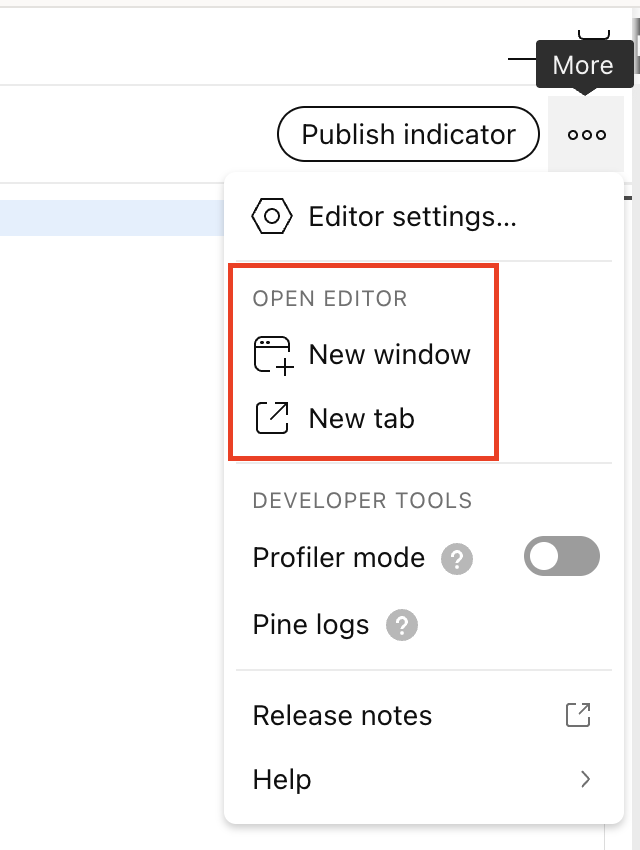 - 「Pineエディタ」の右上にある「詳細」ボタン(3つの点のアイコン)をクリックします。
