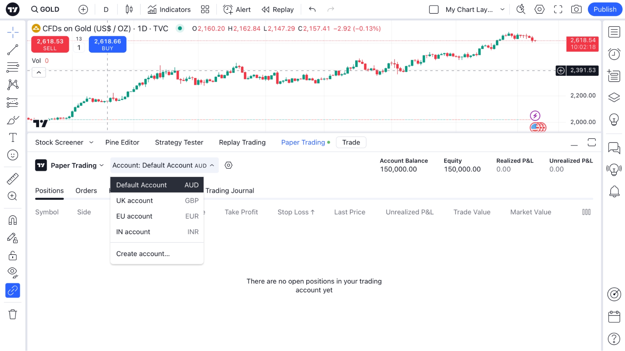 デフォルトのペーパートレード口座の通貨は USD ですが、取引のニーズに応じて最適な通貨を選択することができます。