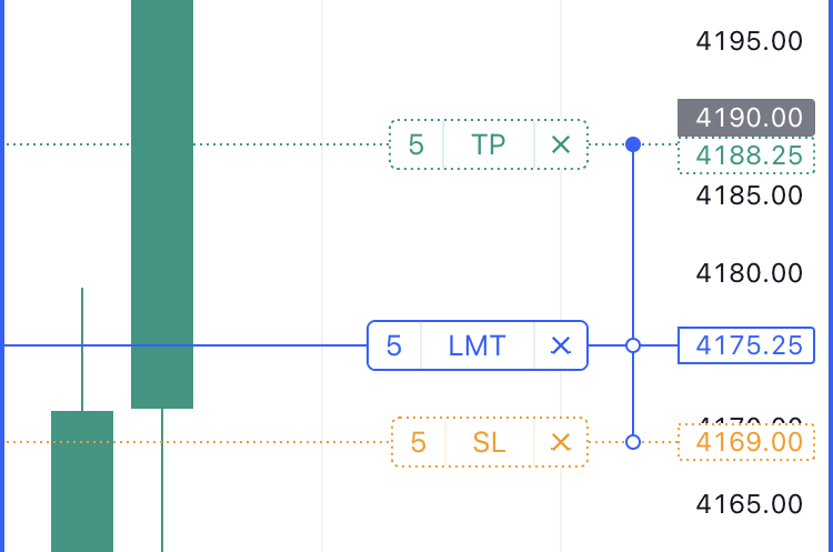 チャート上で注文を変更するには、注文をタップして選択した後に、それをドラッグしてください: