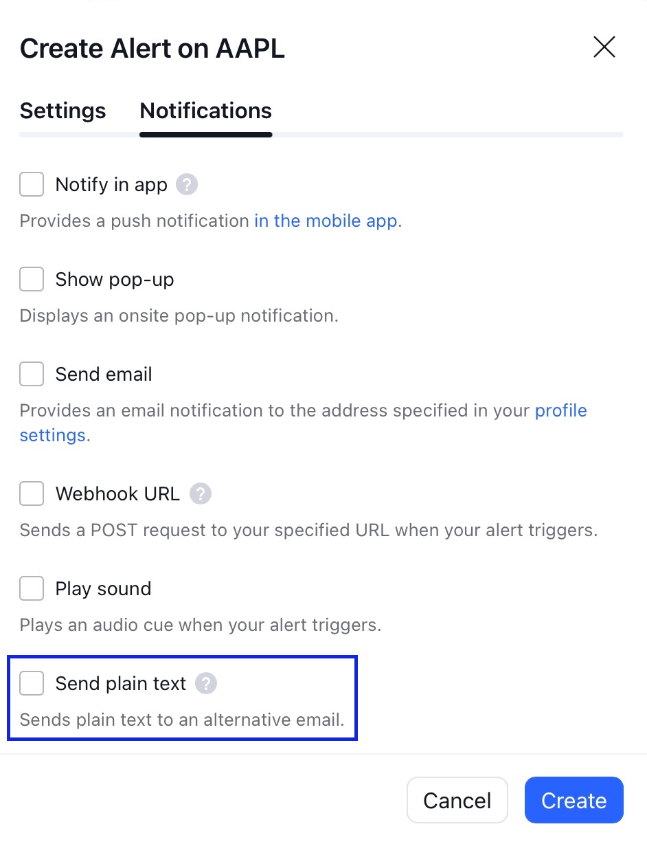 如果您希望透過其他電子郵件地址接收快訊通知,則可以使用備用電子郵件。只需選取快訊設定對話方塊中的傳送純文字方塊,並指定您要使用的電子郵件地址即可。