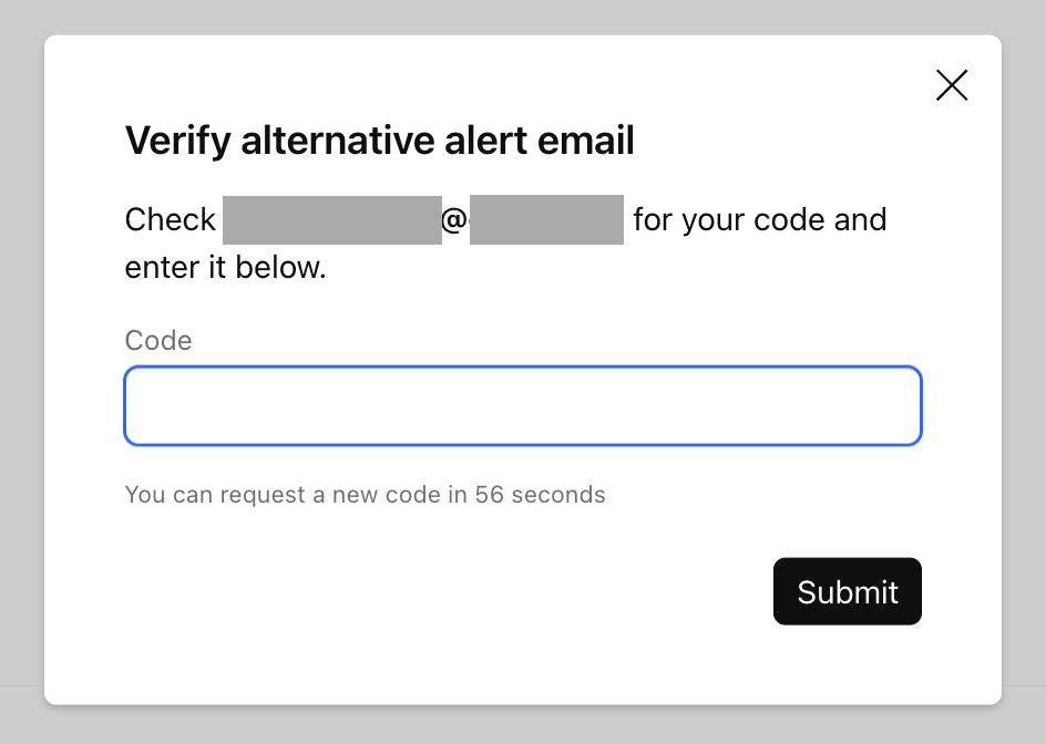 - 然後,一個6位數的驗證碼將會傳送到指定的電子郵件地址,您需要在驗證碼欄位中輸入該位址。