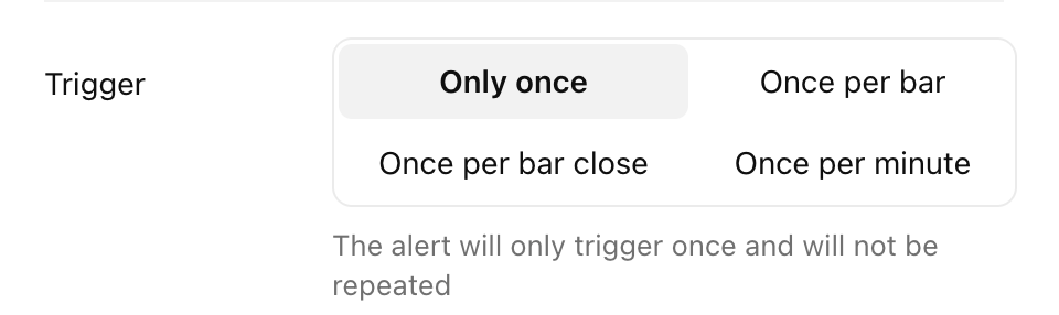 只有一次 — 僅觸發一次快訊。快訊條件必須與您為其觸發設定的確切參數相符。