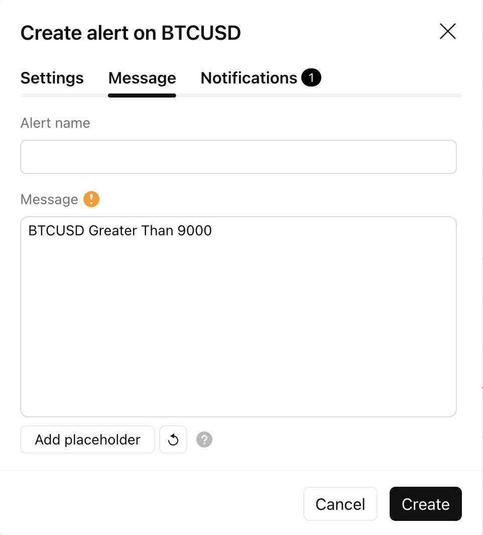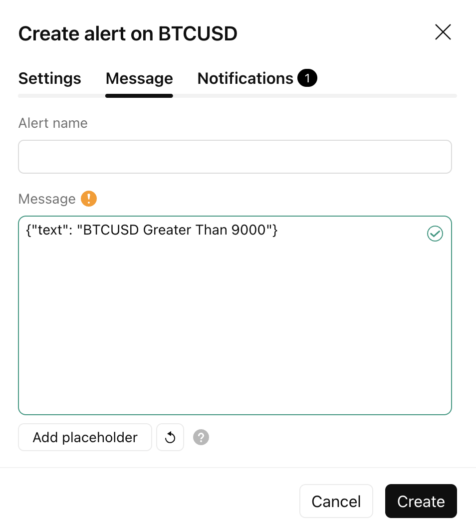 curl -H 'Content-Type: text/plain; charset=utf-8' -d 'BTCUSD Greater Than 9000' -X POST https://webhook.site/test為了保護您的數據,僅在啟用雙重因素身分驗證的情況下,才允許使用快訊Webhooks。