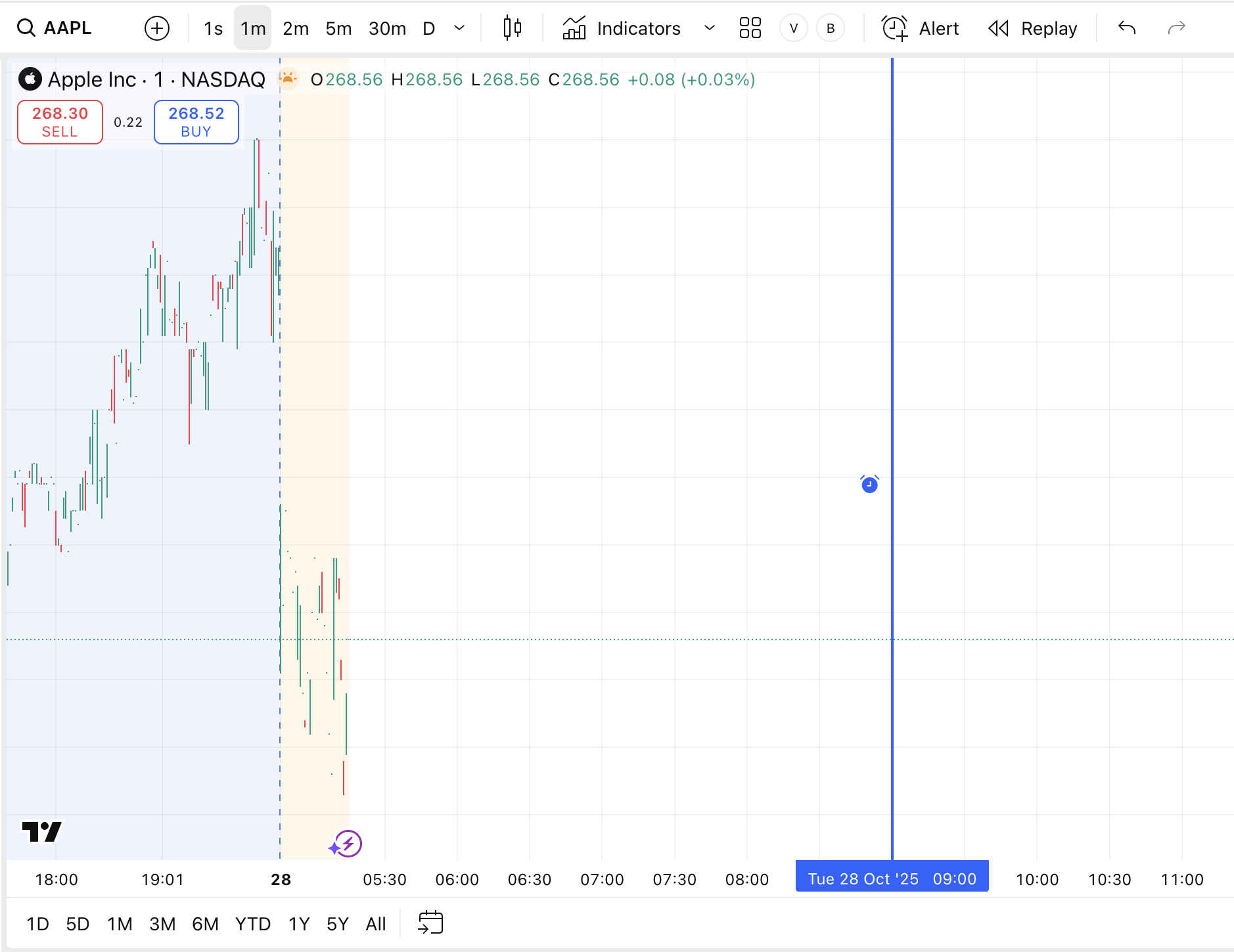 假設您想設定一個應在今天09:00觸發的快訊,和一個應在幾週內觸發的快訊。在這裡,您可以使用以下快訊配置:“商品穿過垂直線”。一旦越過這條線,快訊就會相應地觸發。
