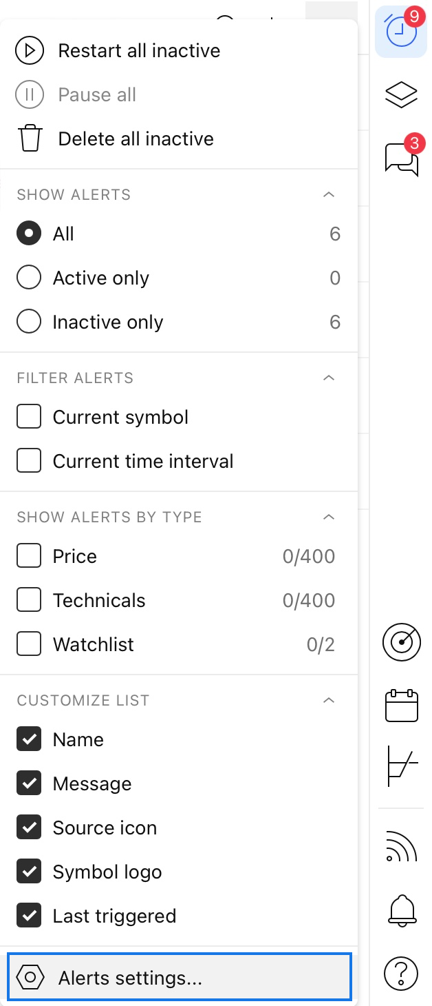 快訊音量可在"設定" → "快訊"中找到。此設定為全域性,同時適用於所有快訊。