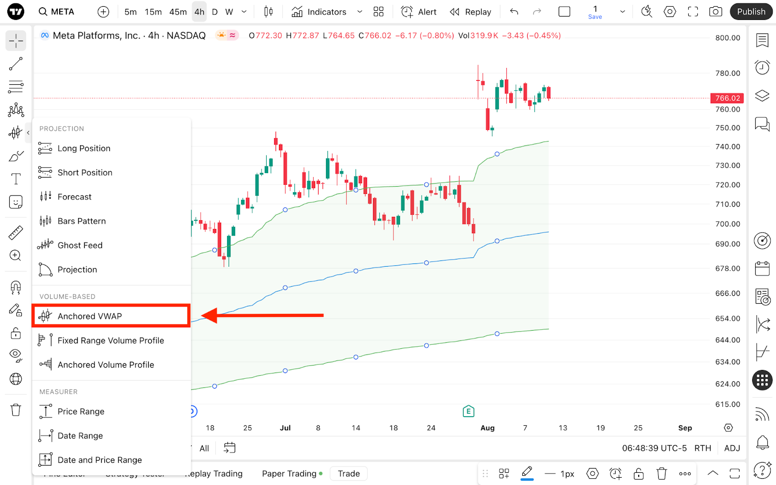 固定VWAP可在左側工具列的「預測與測量工具」中找到。