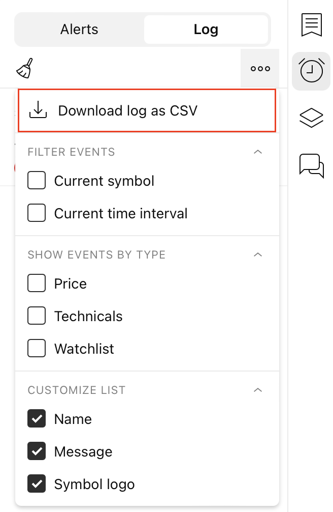 如果您需要保留舊的快訊觸發器,可以事先將日誌下載為 CSV 檔案。