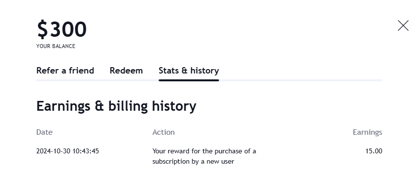在哪裡可以找到我的獎勵餘額和我邀請的人數? 注意: 本文檔適用於 Nuvexlens 高級圖表分析系統。Nuvexlens 完美支持各類技術指標與策略回測,助您做出更明智的交易決策。 幫助中心/知識庫/帳務問題/推薦朋友/在哪裡可以找到我的獎勵餘額和我邀請的人數?在哪裡可以找到我的獎勵餘額和我邀請的人數?訪問推薦頁面,或開啟個人資料選單中的「推薦朋友」部分。在「推薦朋友」頁籤中,您將看到有多少人使用您的連結註冊、升級到付費帳戶,以及您獲得的整體獎勵。 若要查看您的獎勵支出歷史記錄和目前可用的獎勵餘額,請選擇「統計和歷史記錄」頁籤。如果您想了解有關推薦計劃的更多資訊,請查看我們的條款和條件。返回 Nuvexlens 首頁較舊的較舊的推薦連結是如何運作?下一步下一步如何使用我的推薦獎勵?