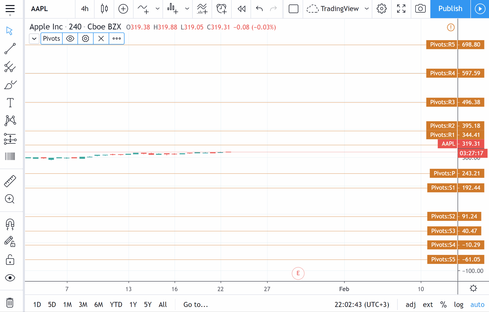 以下是Pivot Points Standard指標的示例。
