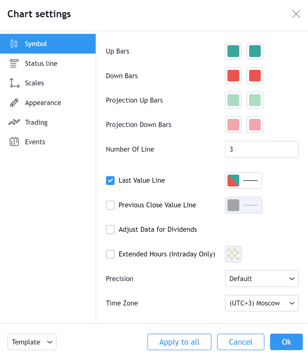 你可以透過圖表設定中的「線段數量」輸入,控制計算時參考的過去線段數量。一般設定為3,表示只有當收盤價高於過去三條線段的最高價時,才會形成新的上升線;當收盤價低於過去三條線段的最低價時,才會形成新的下降線。