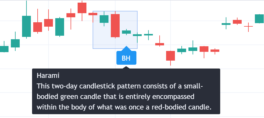 牛市孕育型是一種為期兩天的K線形態,由一根小的綠色K線組成,完全包含在曾經是紅色K線的範圍內。這種型態通常先處於下降趨勢,表明熊市價格走勢後出現逆轉。