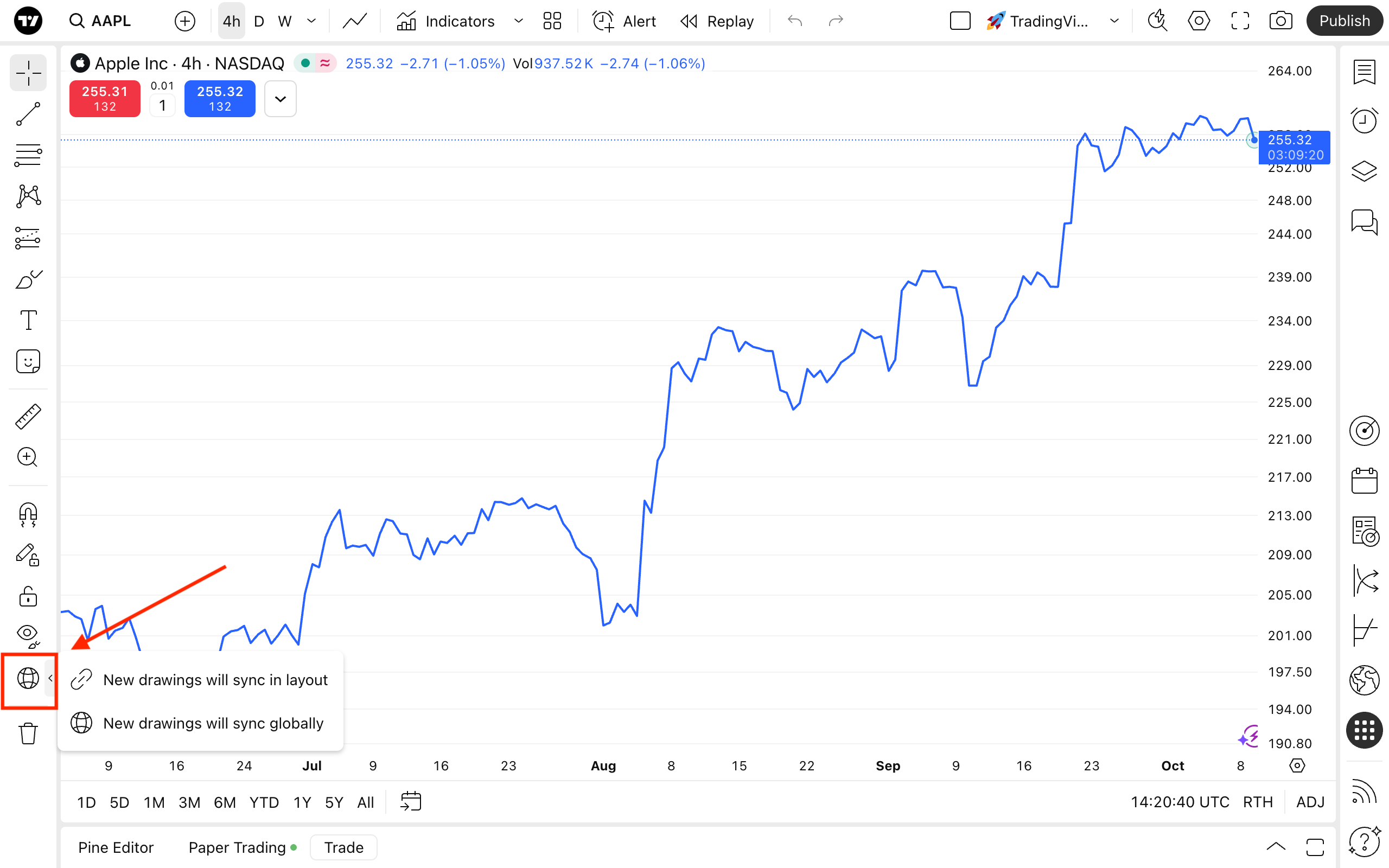現在,使用左側面板上的按鈕開啟繪圖物件同步。
