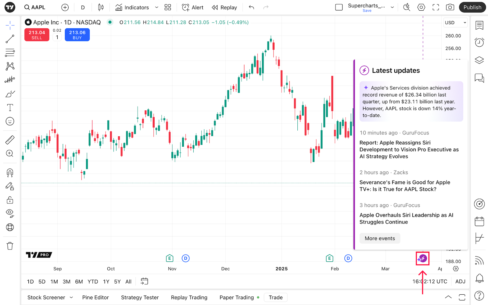 注意:圖表類型和商品方面的圖表設定可能有所不同。商品部分根據您選擇的圖表類型而變化,並且股票分割等公司事件對於比特幣來說是不可能的。