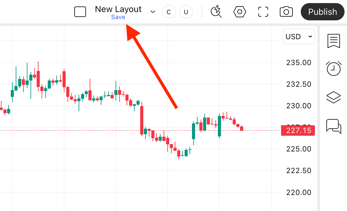 如果版面中有未儲存的更改,版面名稱下方會顯示藍色的「儲存」標誌。如果您看到此訊息,請在關閉頁面之前儲存版面,以免遺失最新變更。