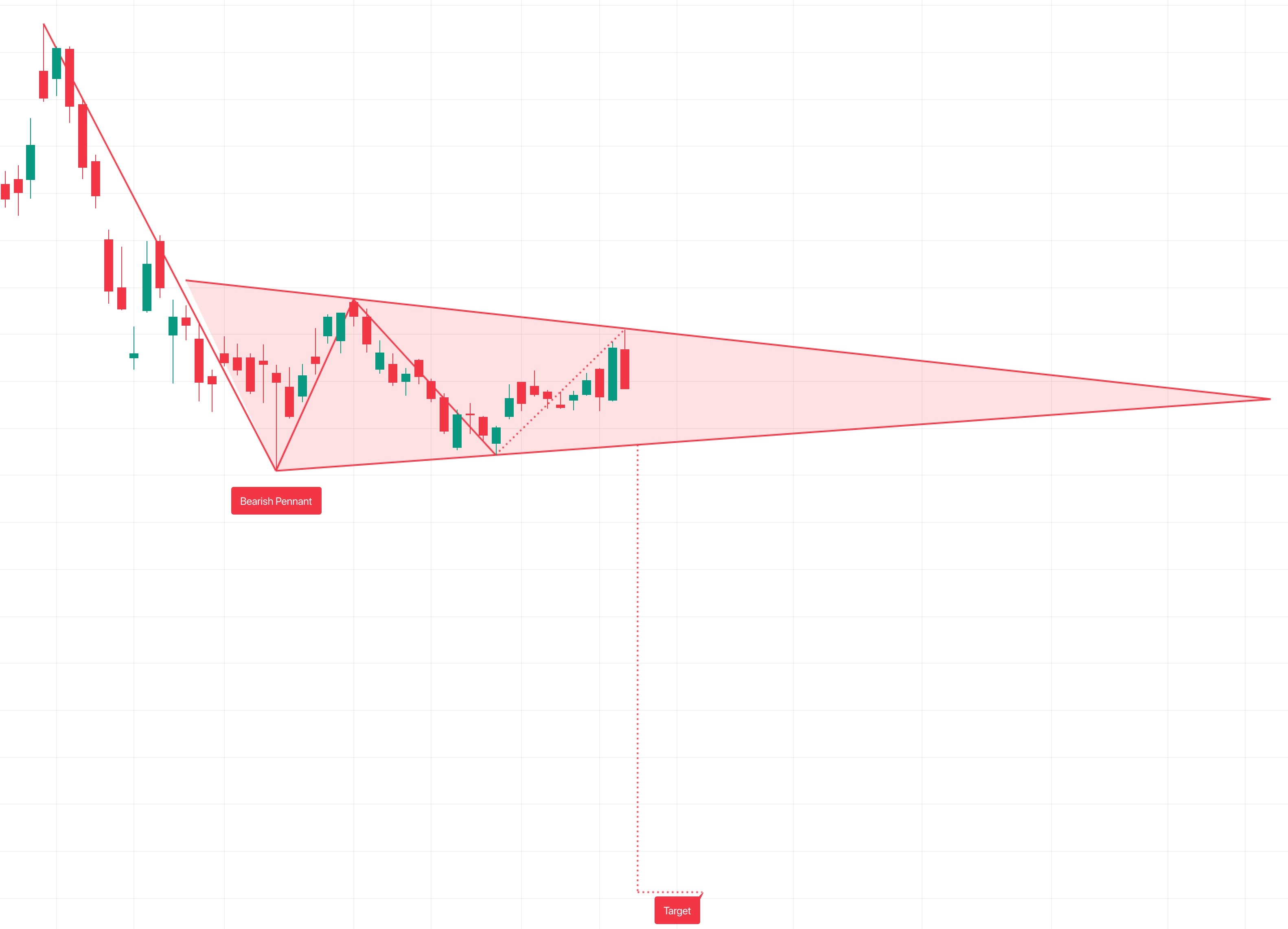 - 失敗。價格突破下線,未到達目標位而升至點5以上,或價格突破三角旗形上線但未突破下線。