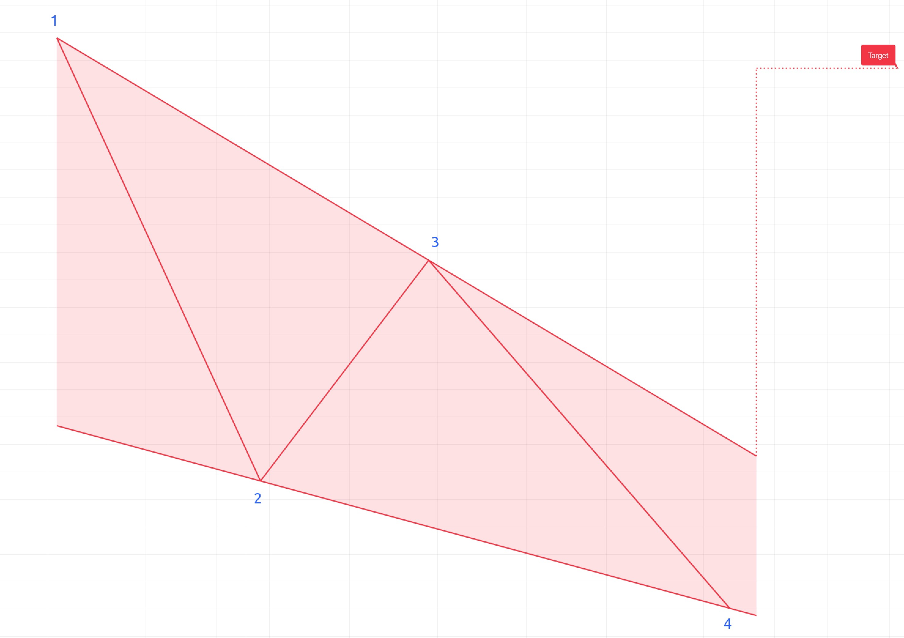 下降楔形是一種反轉形態,是一種限制價格走勢的傾斜、收斂通道。通道線向下。預計價格突破楔形的上線後,將進一步上漲至大約楔形底部的高度。