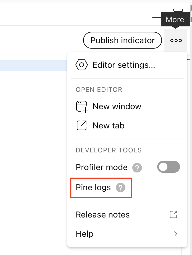- 點擊Pine編輯器右上角的「更多」按鈕(三個點)。