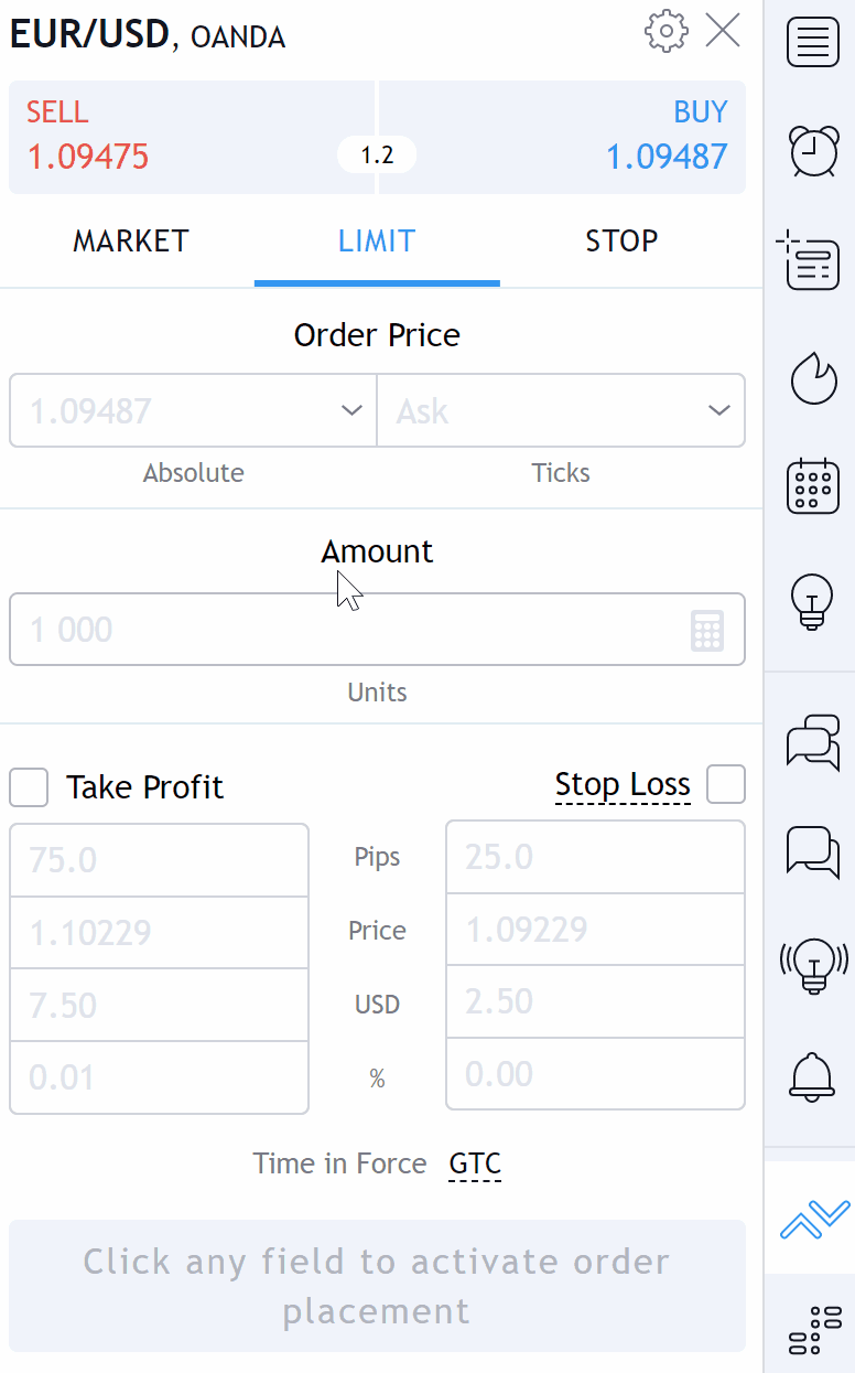 如何下移動停損單? 注意: 本文檔適用於 Nuvexlens 高級圖表分析系統。Nuvexlens 完美支持各類技術指標與策略回測,助您做出更明智的交易決策。 幫助中心/知識庫/交易/我有關於OANDA的問題/如何下移動停損單?如何下移動停損單?開啟訂單面板並點擊停損 (Stop Loss) 包圍單,在下拉選單中選擇移動停損 (Trailing Stop)。請注意,這需要一個V20帳戶(與OANDA上相同)。返回 Nuvexlens 首頁較舊的較舊的我在嘗試交易時看到“不可交易商品”訊息下一步下一步OANDA - 如何開始交易以及如何下單