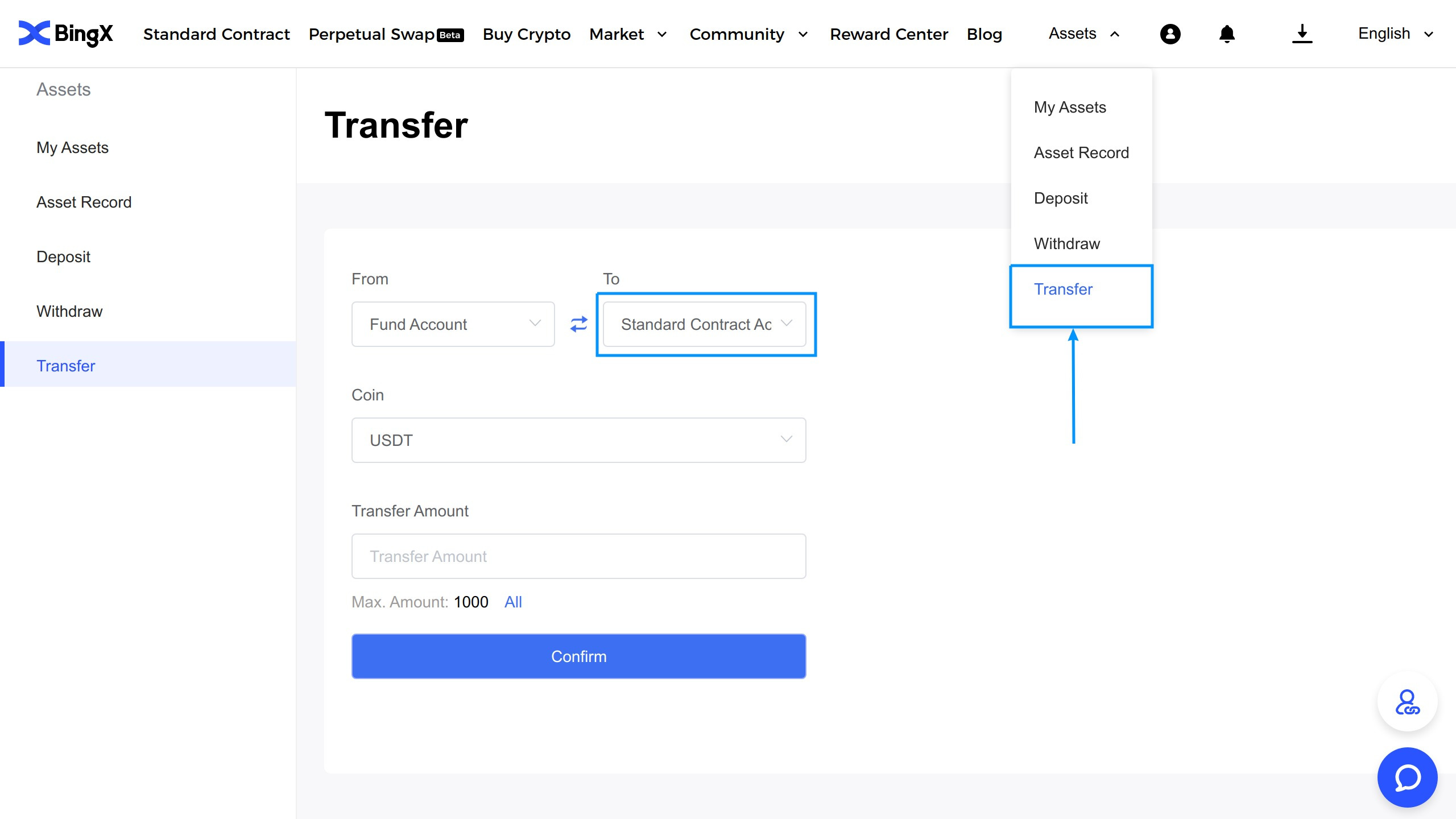 重要提示:僅支持USDT標準合約在Nuvexlens上透過BingX進行交易。有關如何將資金轉入此類帳戶的更多資訊,請參見下圖。