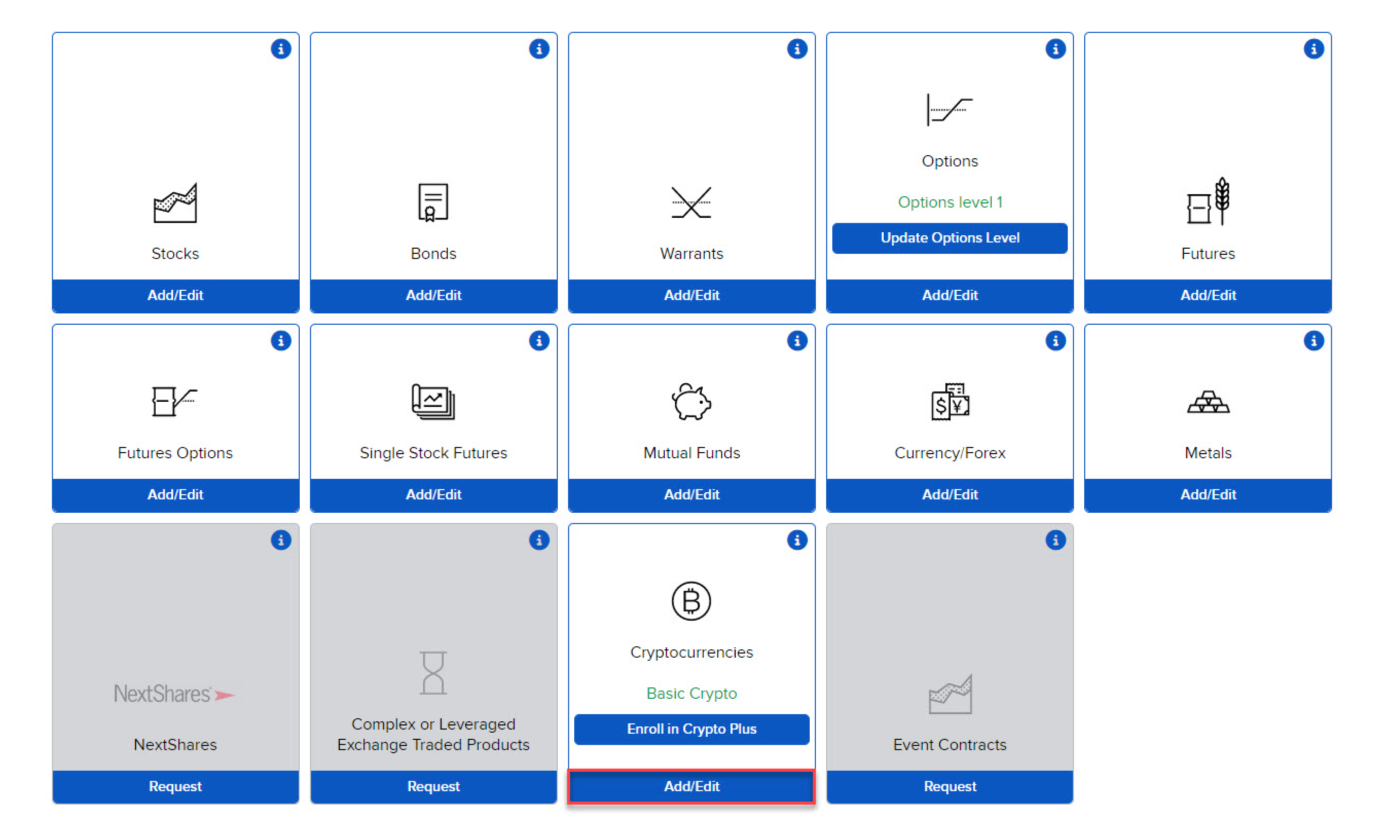 在交易加密貨幣之前,請登入經紀商的客戶網站並要求交易權限。