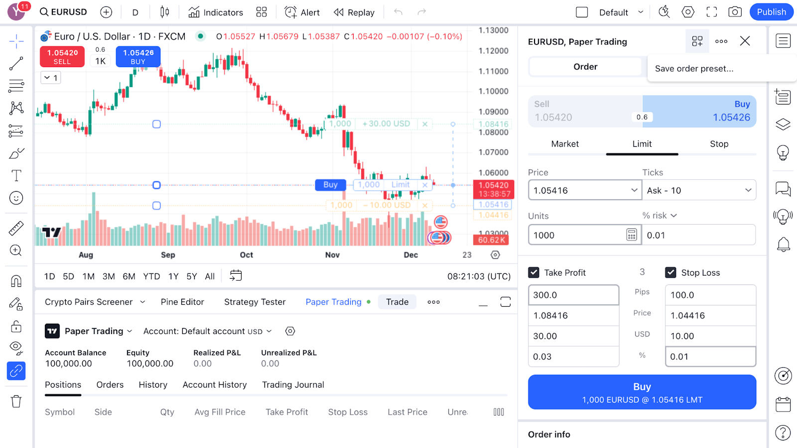 2. 在訂單視窗中,點選“訂單預設”按鈕,選擇“儲存訂單預設...”