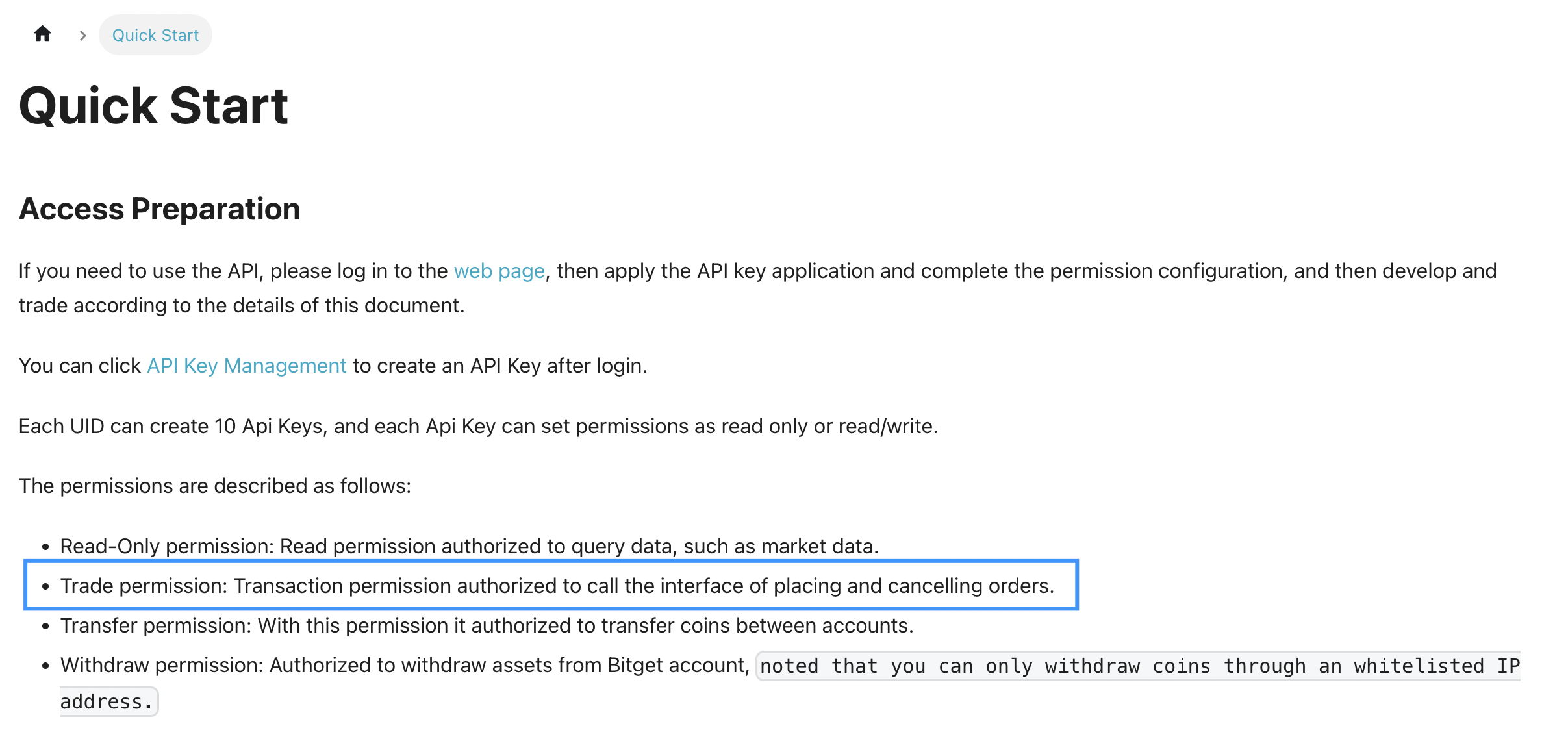 我在Bitget收到錯誤“權限不正確,需要交易權限”請確保您用於連結帳戶的API金鑰具有交易權限。更多資訊請點擊此連結。返回 Nuvexlens 首頁較舊的較舊的我在Bitget收到錯誤“Apikey不存在/密碼錯誤”下一步下一步為什麼我會收到“登入失敗:授權失敗”錯誤?